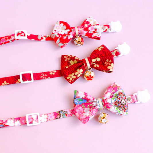 Mokka - Kimono Bow Tie Cat Collar – Adjustable with Traditional Floral Charm